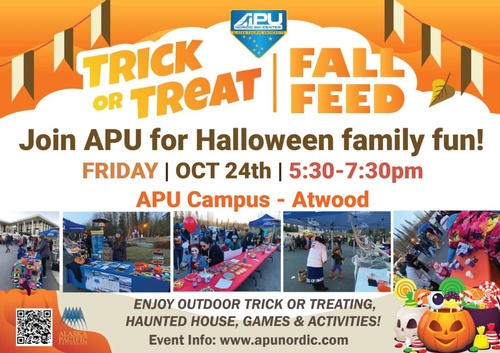 You’re invited to a free, family-friendly community event with APU’s Elite Nordic Ski Team and Olympians! Bring your friends and family for an evening full of fun, games, and Halloween excitement!