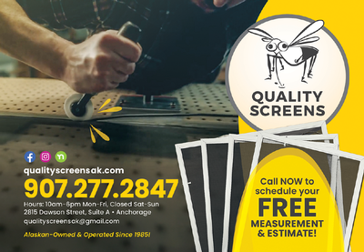 🛠 About Quality Screens: Anchorage’s trusted screen experts since 1985, offering custom window and door screens, screen repair and replacement, pet-resistant mesh, ultra-clear and “no-see-um” screens, and patio/storm door screens. Their team provides on-site consultations and personalized, durable solutions for residential, commercial, and government clients.
